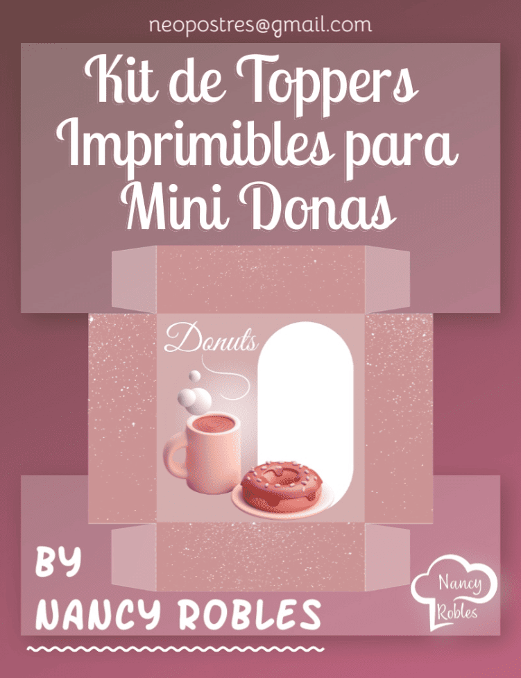 Y para darle una bonita presentación a tus mini donas, hemos diseñado unas cajitas que podrás imprimir en una impresora casera y armar fácilmente. Dale un toque encantador a tus donitas, con este plus para clientes